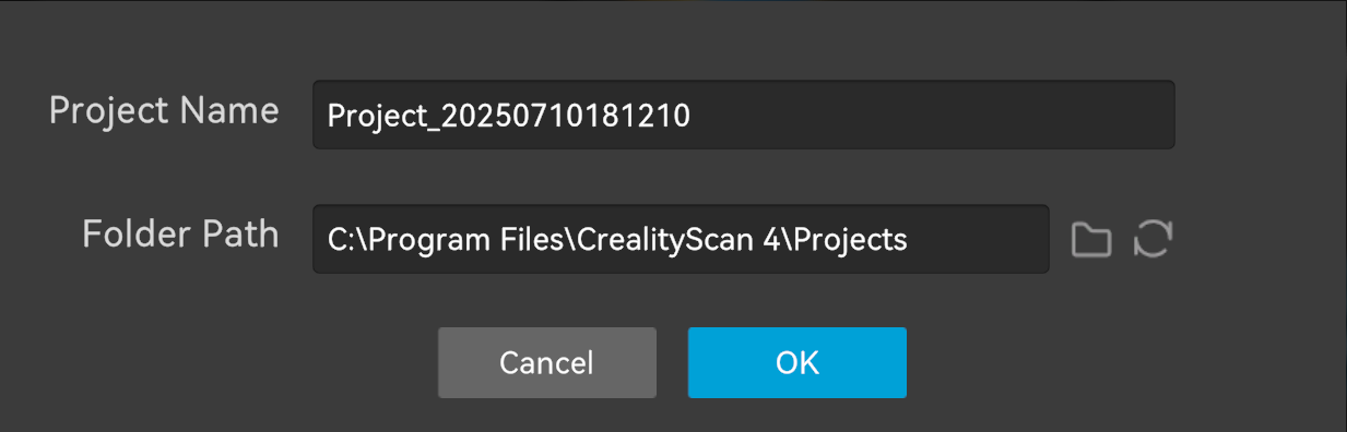 Enter the project name in the pop-up bar, select the folder path, and then click the "OK" button, as shown below: