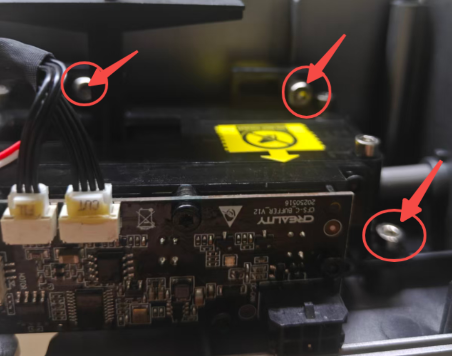 Note: When replacing the cutter buffer PTFE tube, do not grip the mainboard on the top of the buffer to avoid damage.