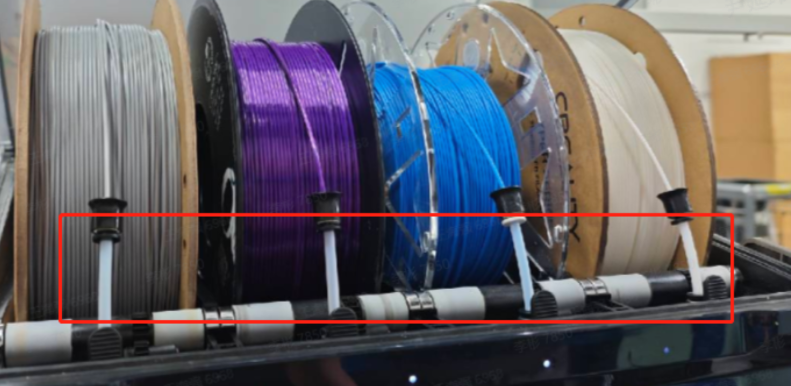The PTFE tube is a consumable part that may wear out over time due to filament friction. It's recommended to regularly check the wear condition of the PTFE tube during routine maintenance. If a worn tube is not replaced timely, it may cause abnormal filament feeding and clogging in the CFS. The PTFE tube used in CFS has specifications of 4*2.5mm.