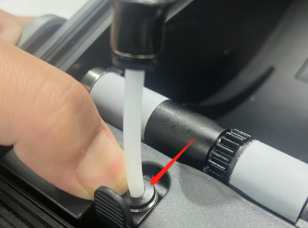 Press the pneumatic connector at the other end of the inlet and pull out the tube that needs to be replaced.