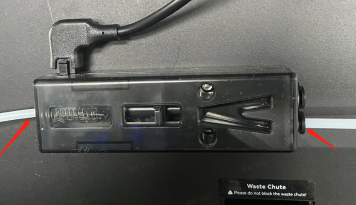 Connect the new 300mm and 400mm PTFE tubes to both ends of the buffer respectively (the shorter one connects to the buffer and K2 Plus inlet pneumatic connector, the longer one connects to the buffer and hub outlet).
