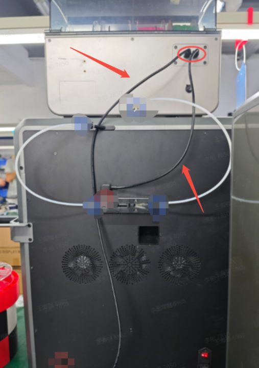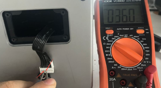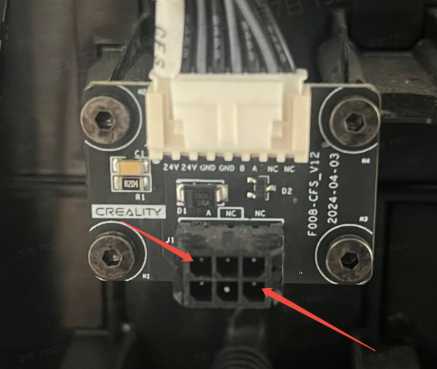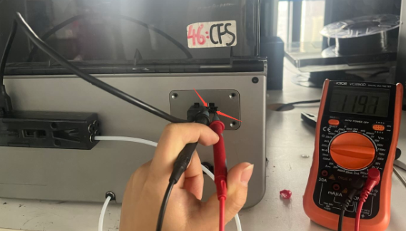 Power off the device. Use a multimeter to measure the resistance of the CFS 485 communication board. Normal resistance with the buffer connected should be around 120Ω. Without the buffer connected, normal resistance should be around 36kΩ. If the resistance is incorrect, check if the cable from the CFS mainboard to the CFS 485 communication board is properly plugged in. If there's no problem, directly measure the pins of the cable (as shown in the image) to see if it's around 36kΩ. If not, replace the CFS mainboard; if yes, replace the CFS 485 communication board.
