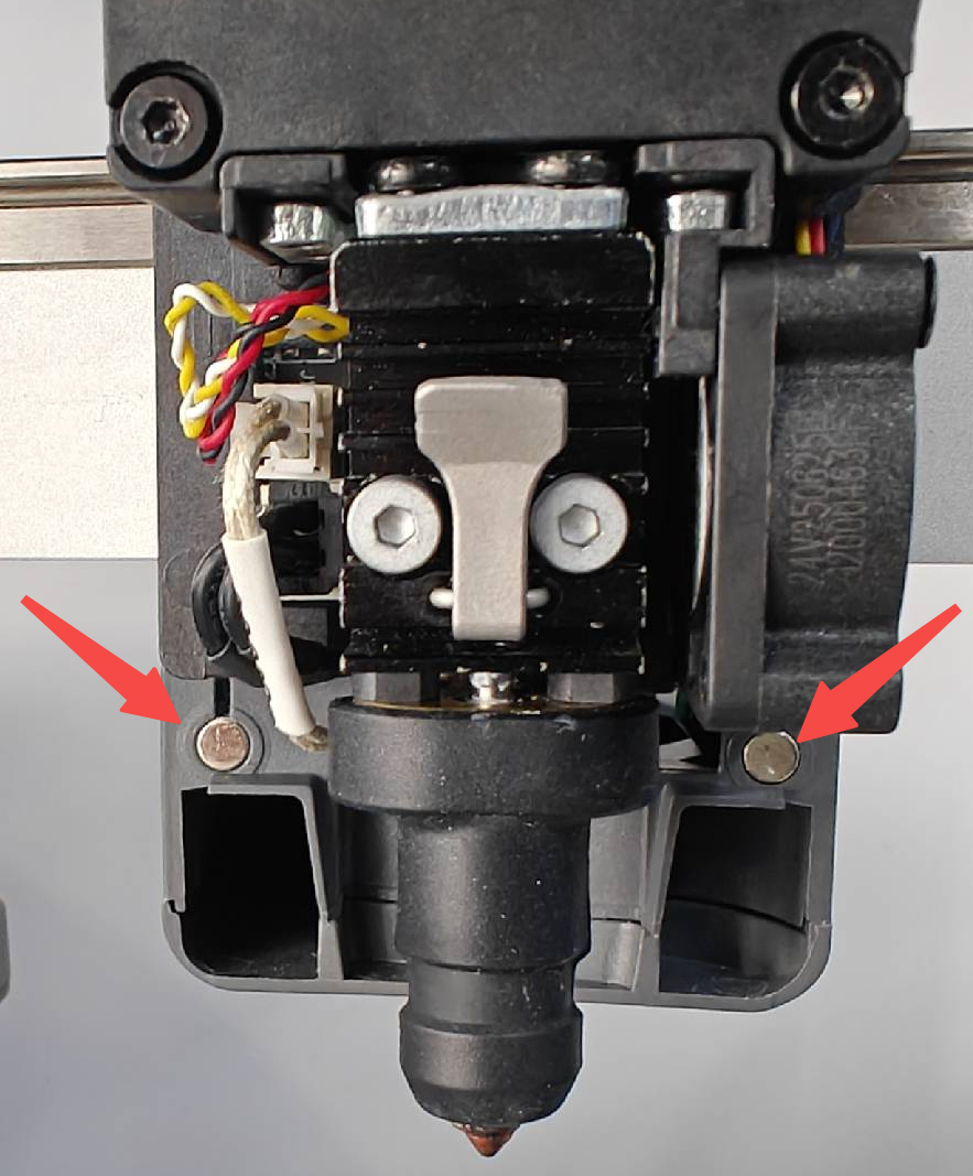 1. Remove the nozzle front cover and test print to see if the noise is reduced. If the abnormal noise decreases, the cause is resonance from the nozzle front cover. In this case, check if any magnets are missing from the nozzle front cover, or if the foam pads on both sides inside the front cover are missing, and replace accordingly. Please contact cs@creality.com accordingly.