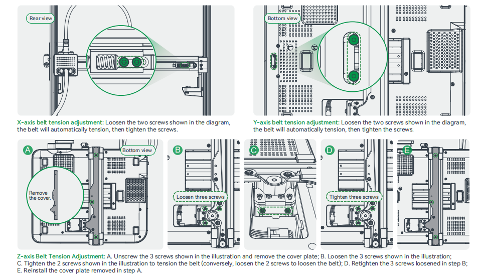 7.3 Adjustment of Belt Tension for X-Axis, Y-Axis, and Z-Axis