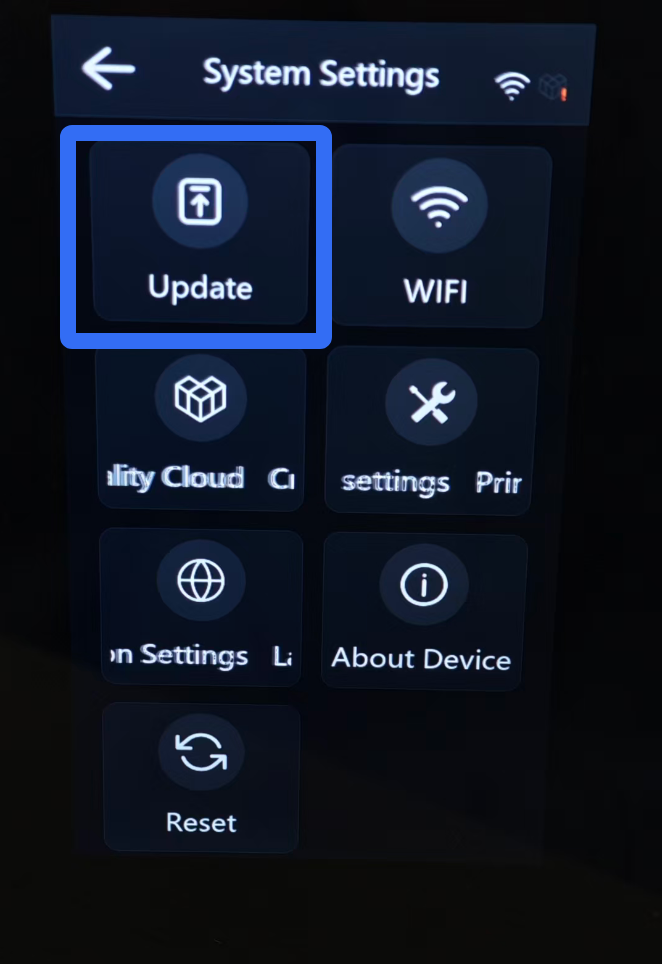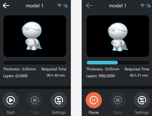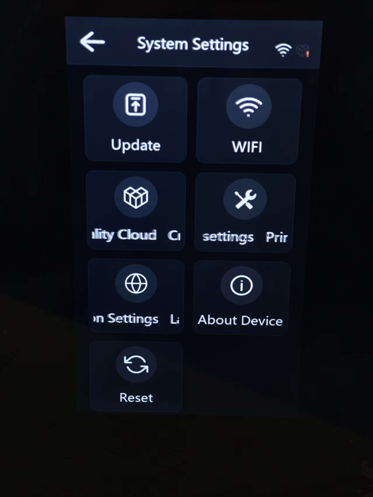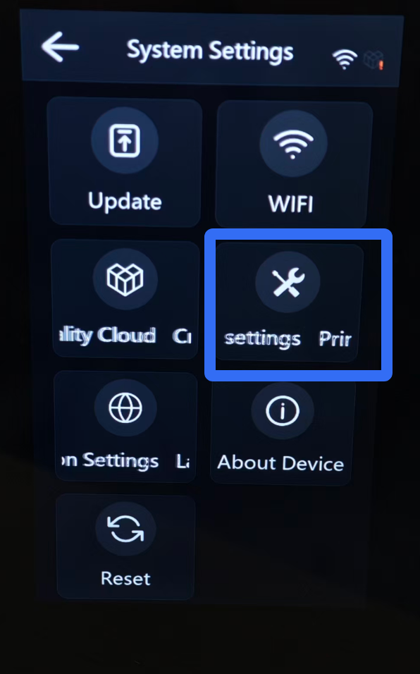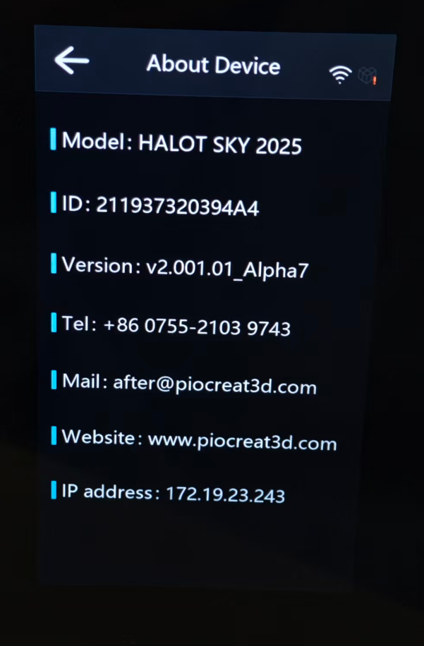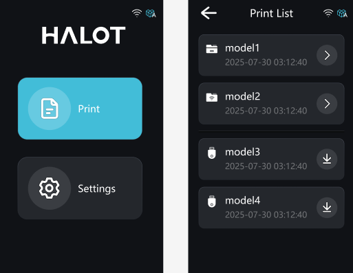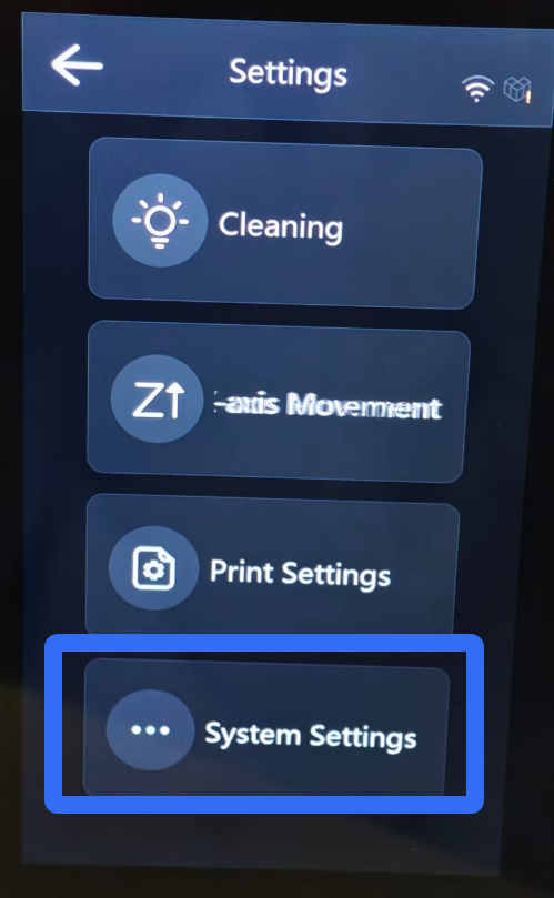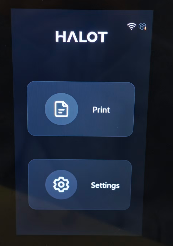 This is the main interface of the SKY-2025 resin printer, providing access to printing operations and printer settings. Please be aware that due to constant firmware improvements, the UI you see might look a little different from this guide.