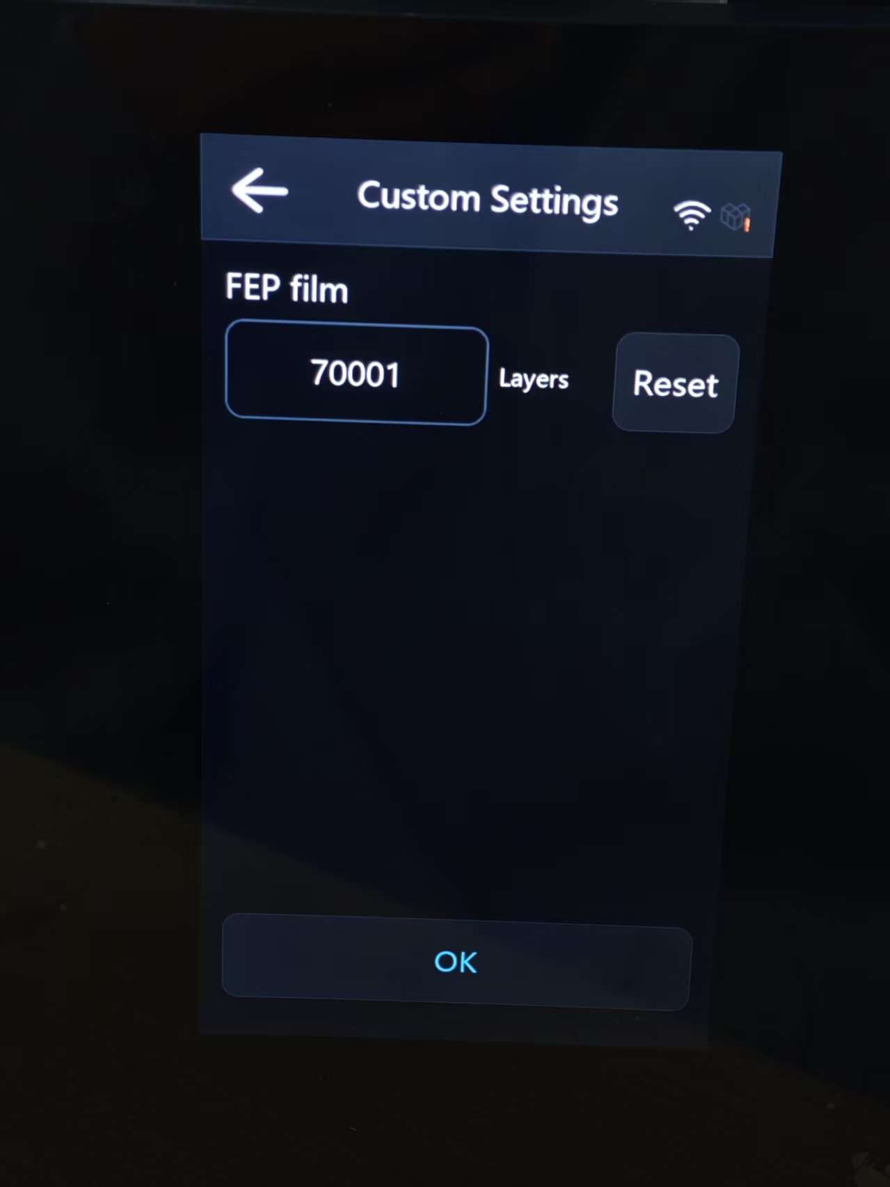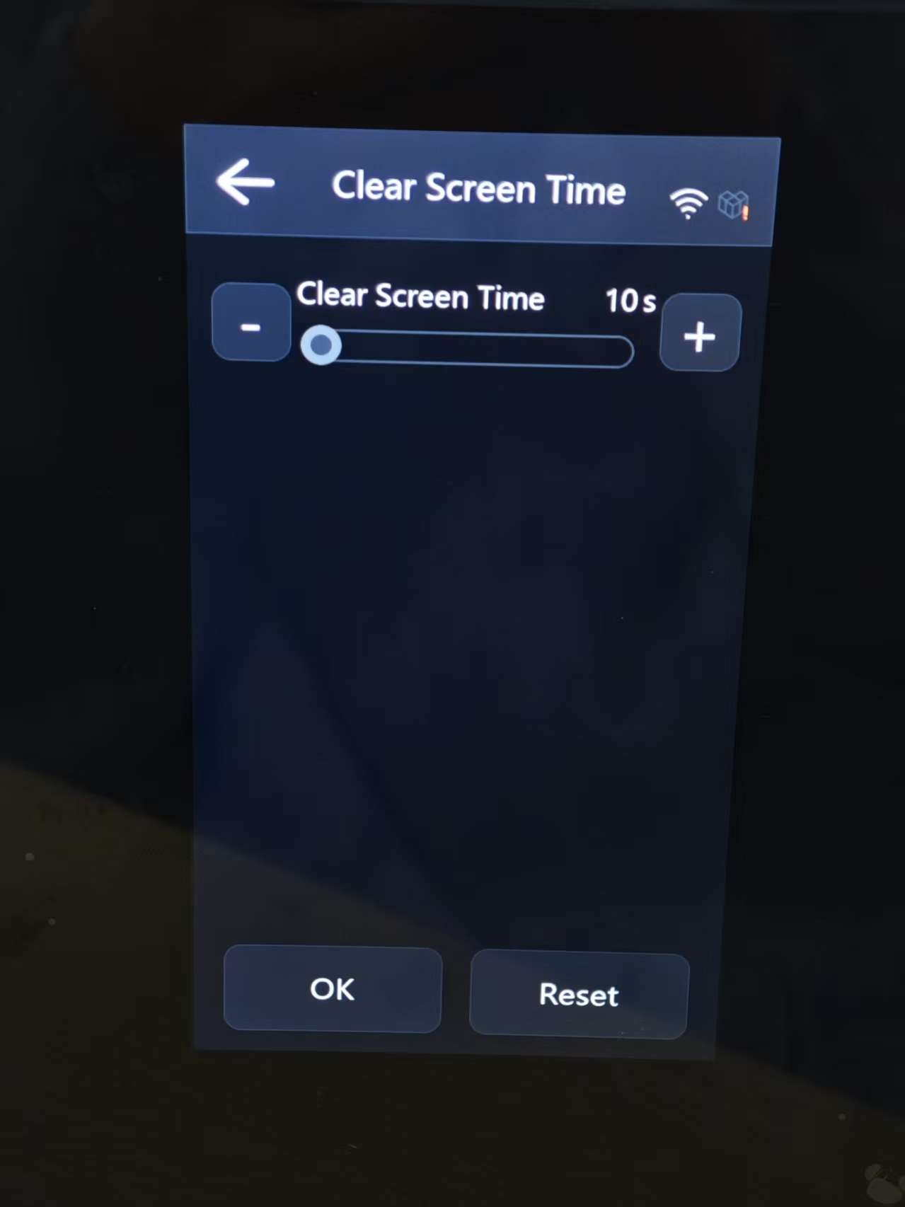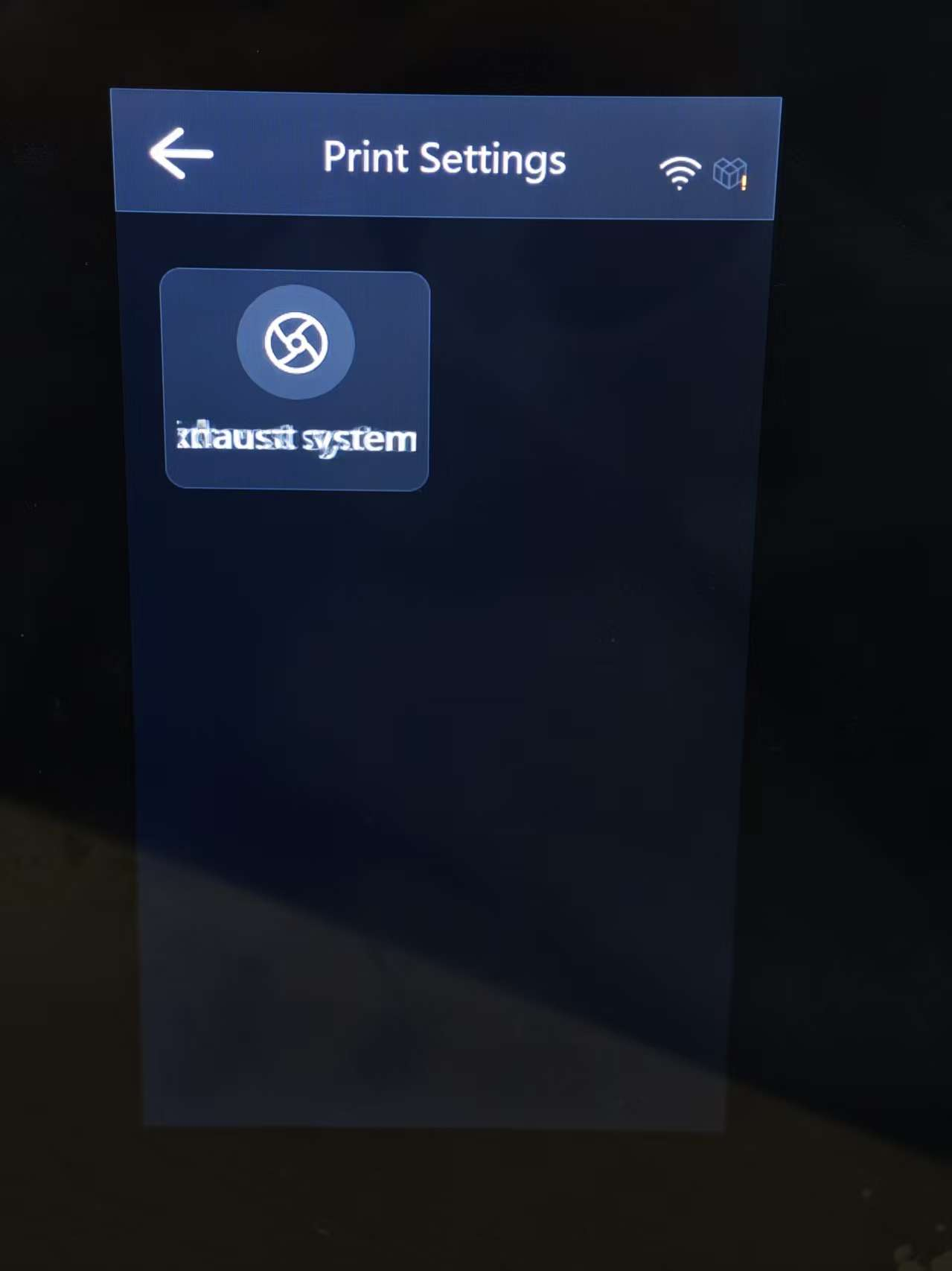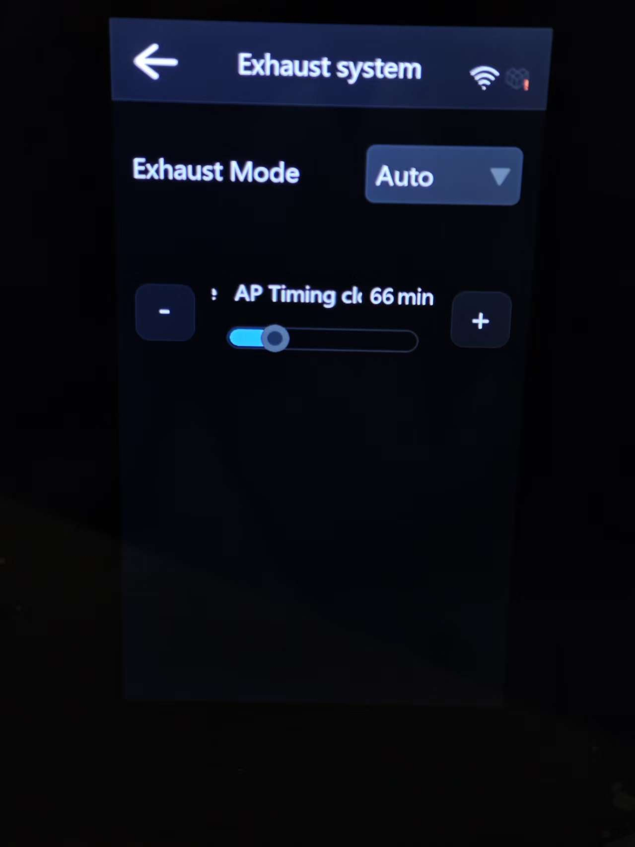 ⑵. Auto: Allows you to set the exhaust duration to minutes (min). When enabled, the exhaust system will automatically operate for the specified time after printing to purify the air inside the chamber.