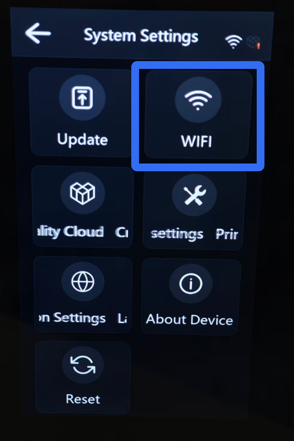 ⑵. WIFI: Search, select, and connect to a WiFi network.