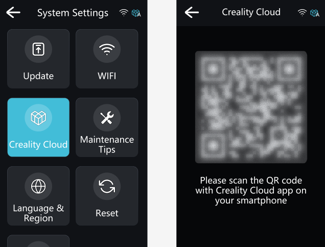 ⑶. Creality Cloud: Log in and bind your Creality Cloud account to enable features like the cloud model library and remote printing. Requires an internet connection.