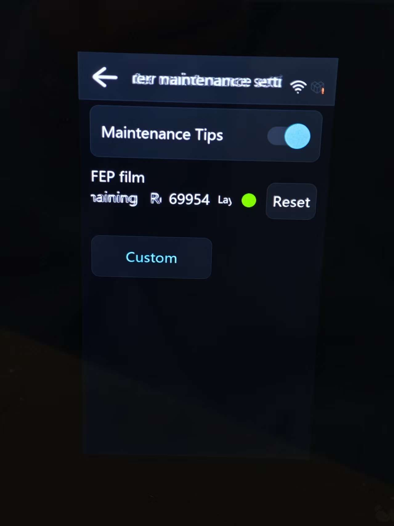 ① Maintenance Tips: Toggle this function to enable or disable reminders for maintenance tasks like Release film replacement.