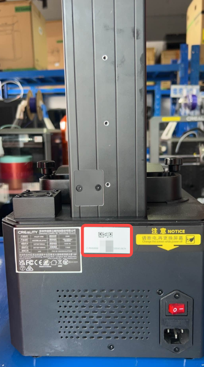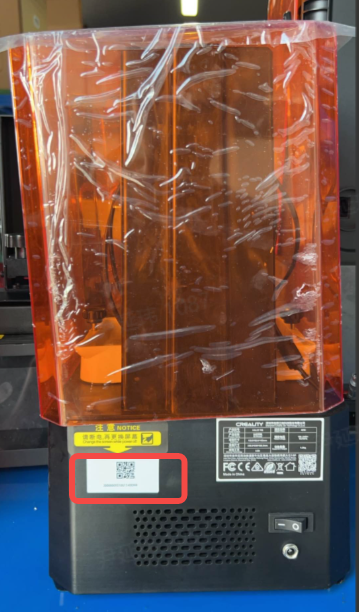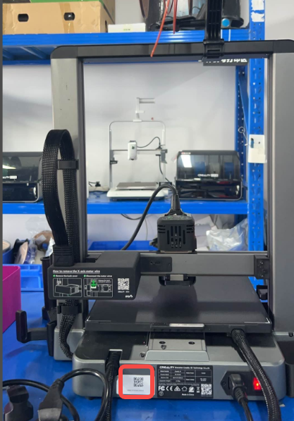 Check near the left side on the back of the machine base, where there's usually a white QR code sticker. The combination of numbers & letters at the bottom of the QR code sticker is the SN code (using Ender-3 V3KE as example)