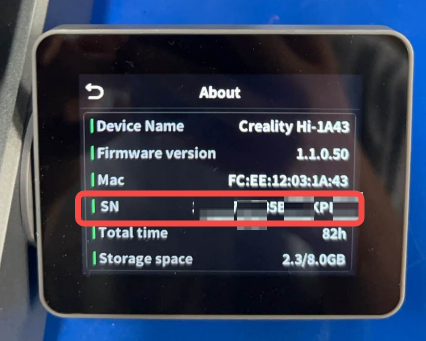 Models that can directly view SN codes on screen include: K2 series, K1 series, Ender-3 V3, Ender-3 V3 Plus, Ender-5 Max, and new models released in and after the year of 2025.