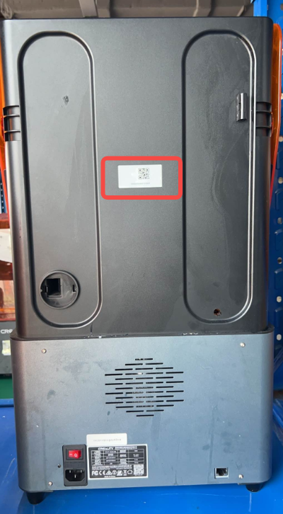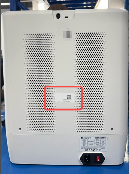 On the left upper side of the power switch at the back of the machine, there is usually a white QR code sticker. The combination of numbers and letters at the bottom of the QR code sticker is the SN code of this model. (Take HALOT R6 as an example)