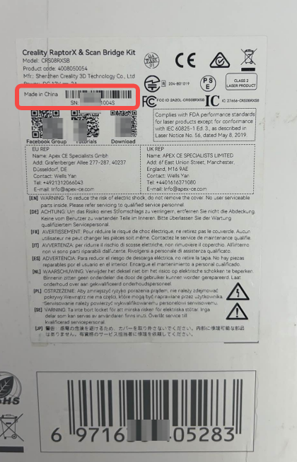 Check the barcode in the marked area on the back of the outer packaging box (e.g. RaptorX) or on the side of the outer packaging box (e.g.Raptor)