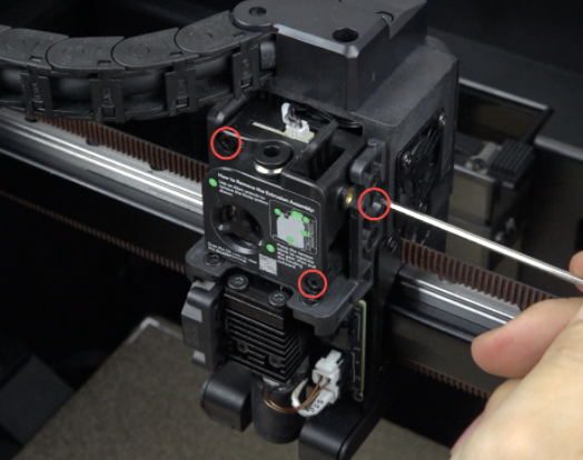 Use hexagonal wrench to remove 3 screws fixing the extruder front cover.