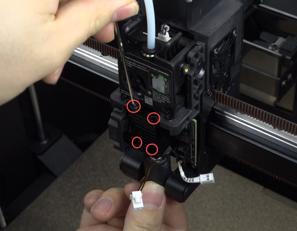 Use hexagonal wrench to remove the 4 screws securing the hotend kit.