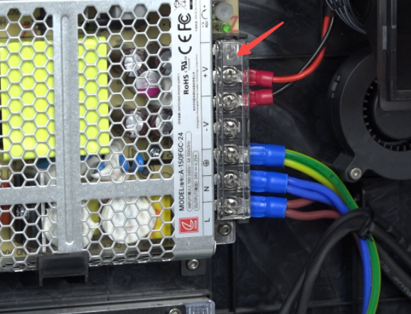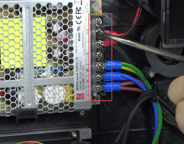 Install the new power supply, use hexagonal wrench to tighten the 2 securing screws.