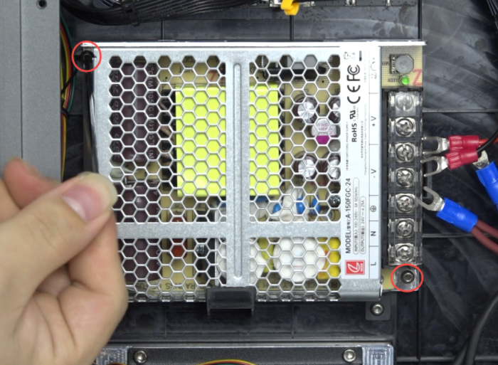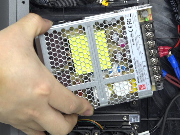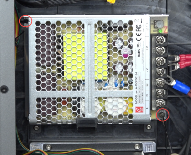 Use hexagonal wrench to remove 2 screws securing the power supply.
