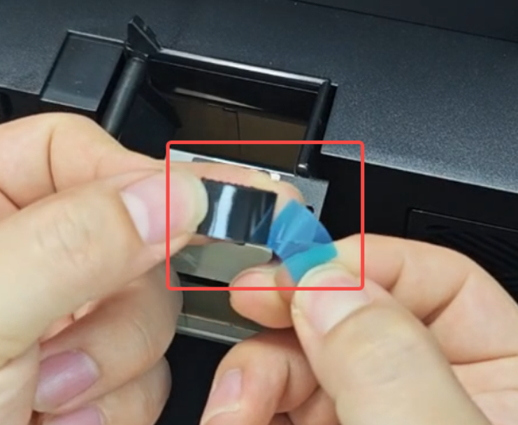 Peel off the release paper from the integrated nozzle wiper tape.