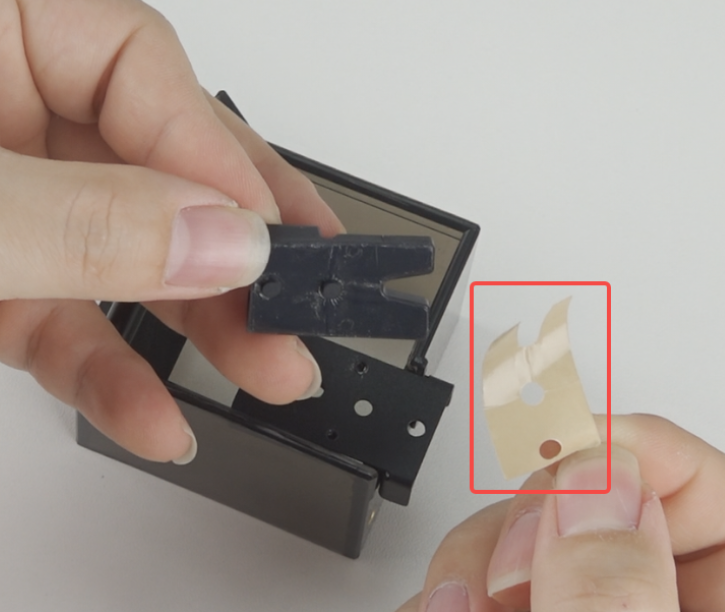 Stick the nozzle wiper adhesive tape onto the nozzle wiper module.