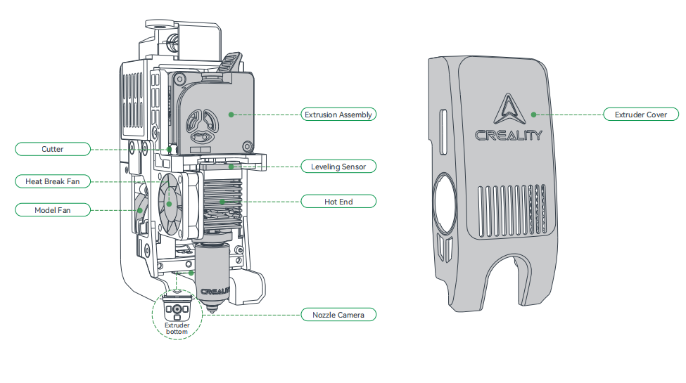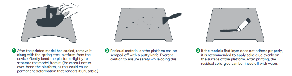 8. Use the provided tools to clean the filament from the extruder in time taking advantage of the residual temperature after printing. Do not touch the extruder directly when cleaning, otherwise it may cause burns;