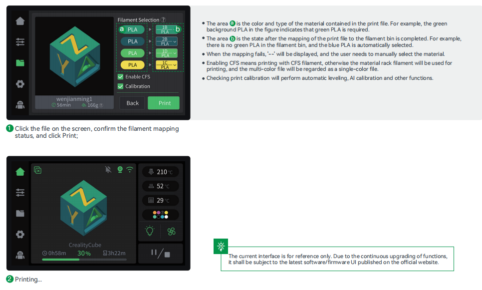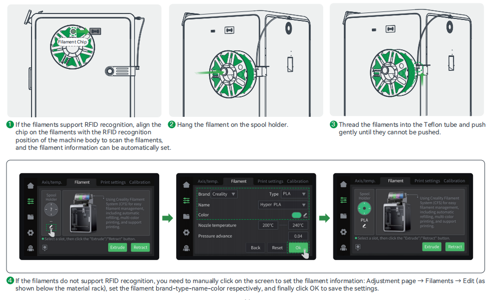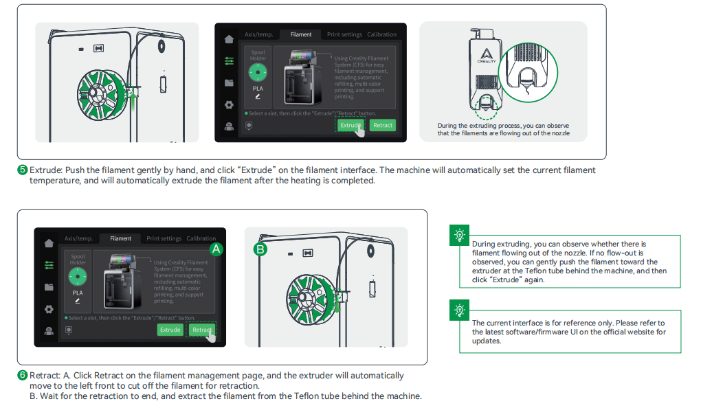 4. Please use recommended filaments to avoid clogging of the extrusion head and causing damage to the machine;