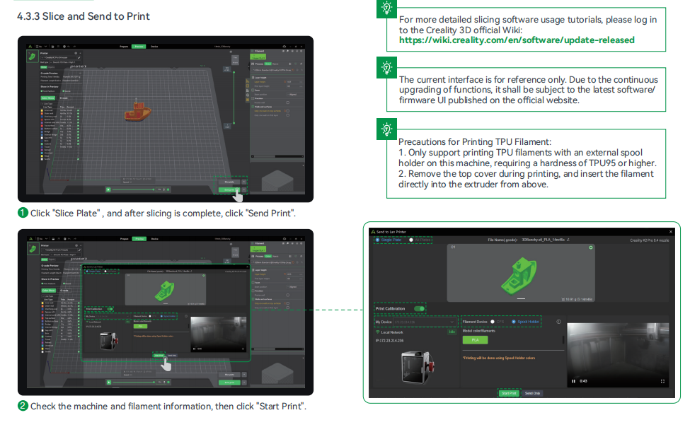 11. Users should comply with the laws and regulations of the corresponding countries and regions where the equipment is located (used), abide by professional ethics, pay attention to safety obligations, and strictly prohibit the use of our products or equipment for any illegal purposes; Creality will not be responsible for any violators' legal liability under any circumstance;