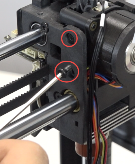 Use the hexagonal wrench to tighten 3 screws on both sides of the extruder.