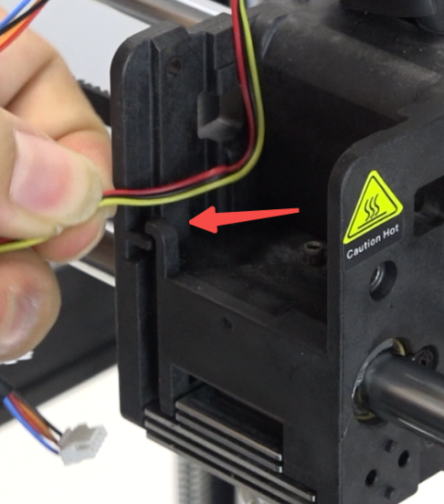 Install the extrusion assembly, route the motor wire and cutter detection wire into the wire clip.