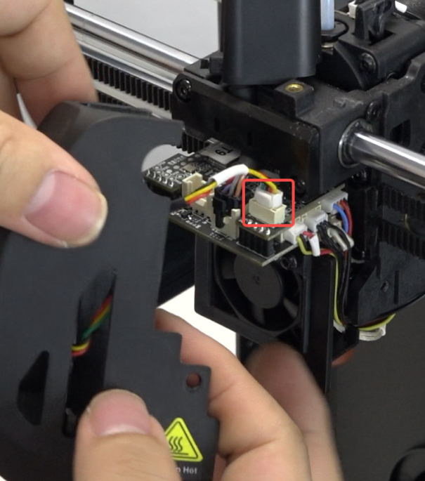 Unplug the model fan wire and remove the nozzle cover.