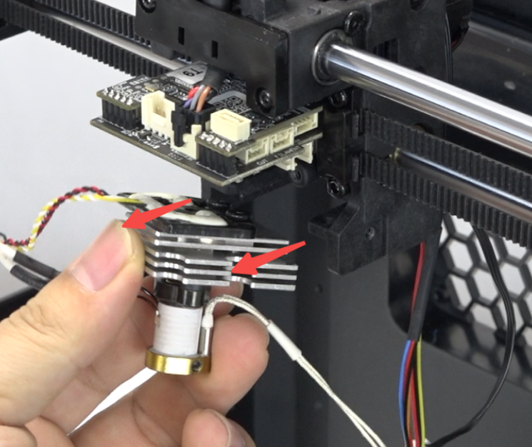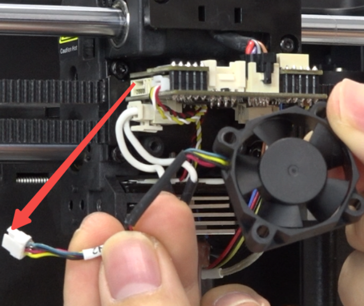 Unplug the heat break fan wire and remove the heat break fan.