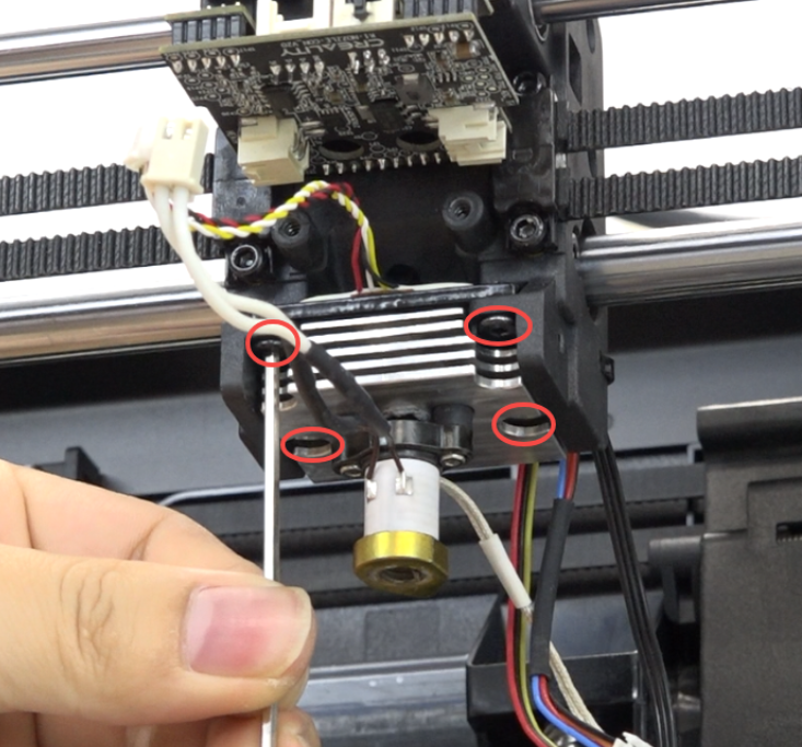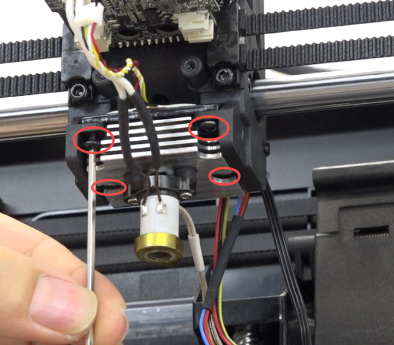 Insert the heat break fan bracket, use the hexagonal wrench to tighten the 2 screws securing the heat break fan.