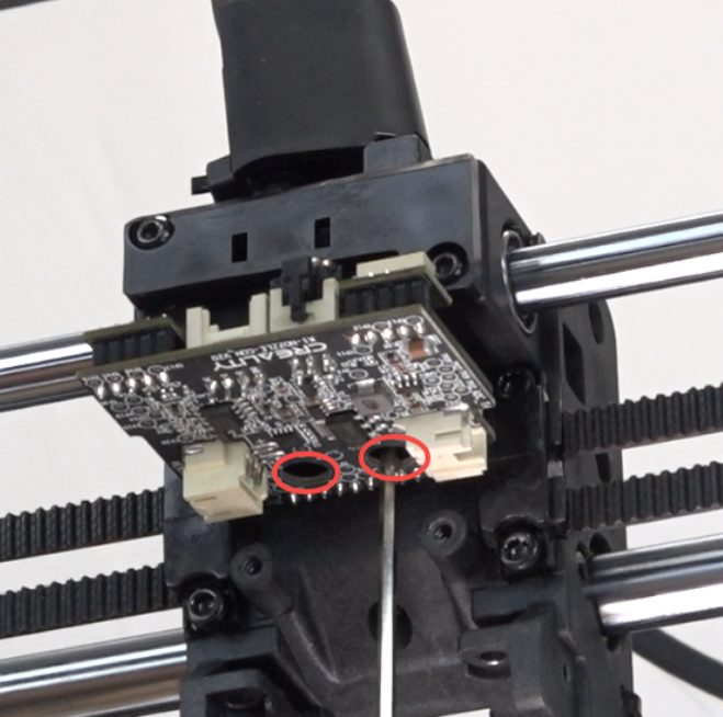 Use the hexagonal wrench to unscrew the 2 screws securing the nozzle board.