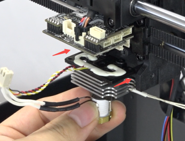 Install the newnozzle board and plug in the nozzle wire.