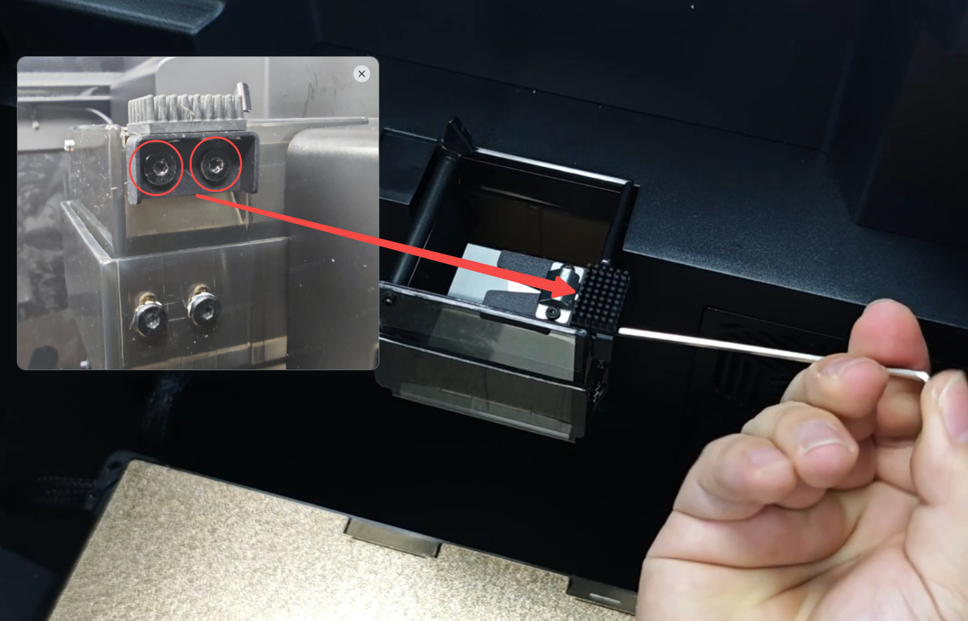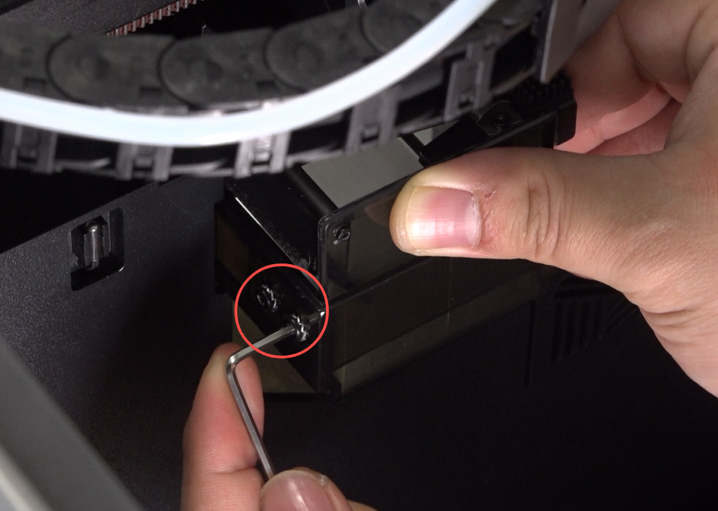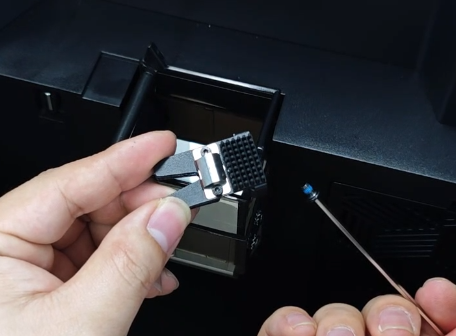Use hex wrench to remove 2 screws securing the nozzle wiper module
