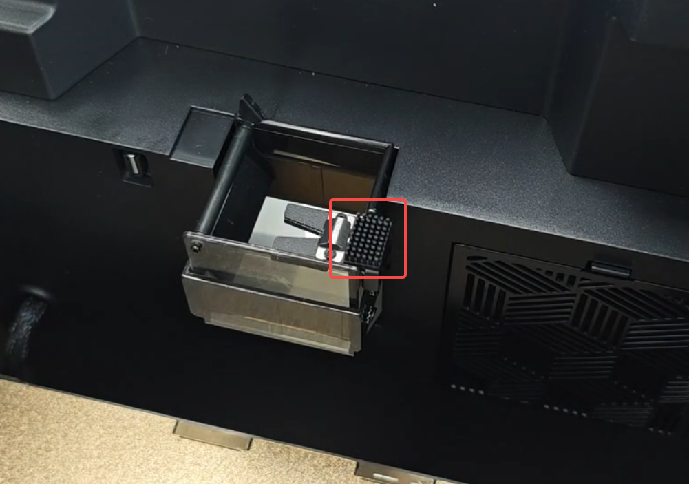 Move the toolhead to the nozzle wiper module, ensuring the nozzle contacts the metal dome.