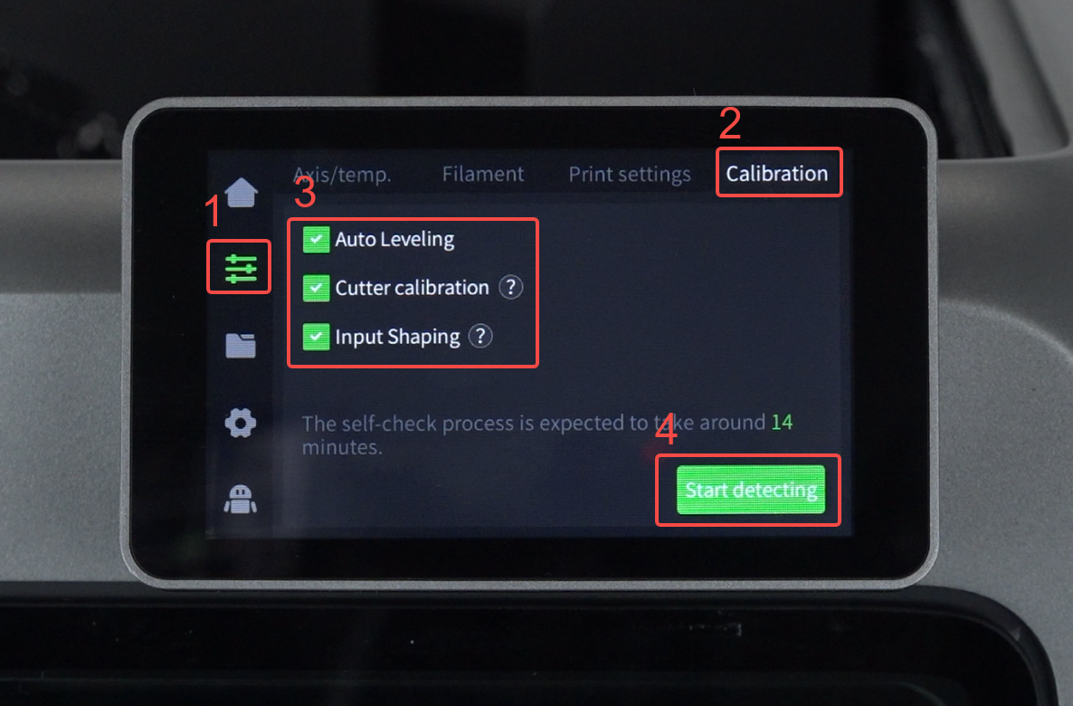 Click "Prepare" - "Calibration" - "Select All" - "Start detecting", and wait for the device calibration to complete.