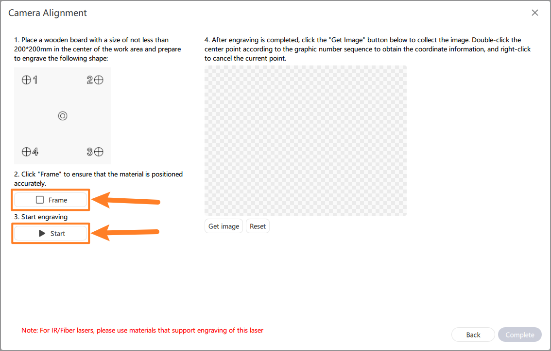 Camera alignment: When coordinate points, make sure that the thickness of the material is consistent with the actual thickness of the carved material.