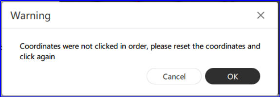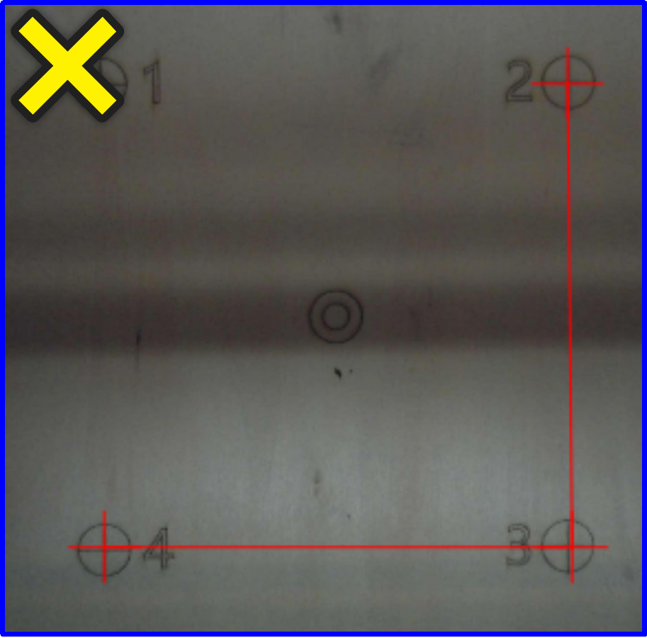 If you do not double-click the center of the calibration pattern in order 1-4, an error message will be displayed indicating that the click was not in order.