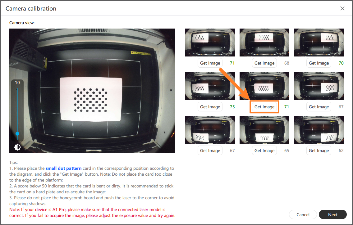 ④. Click [Get image] to obtain the carved calibration image
