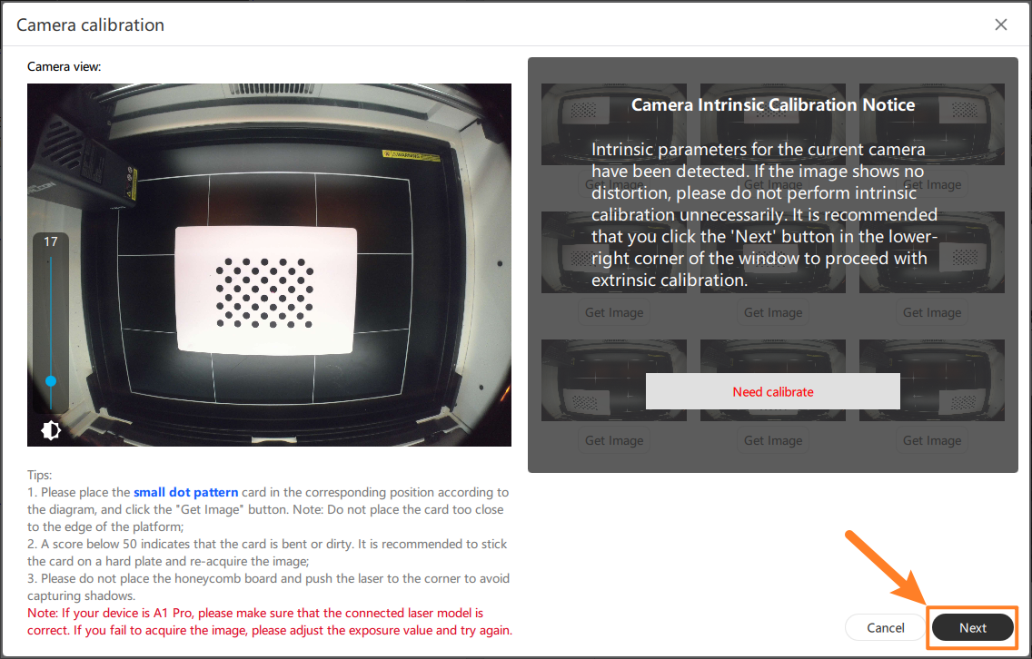 Camera calibration: If your machine can [Read firmware], it is recommended to skip this step directly: ensure that the surface of the calibration card is clean, the calibration card is flat and no lifting, the more flat the calibration card is, the better the camera calibration effect will be.
