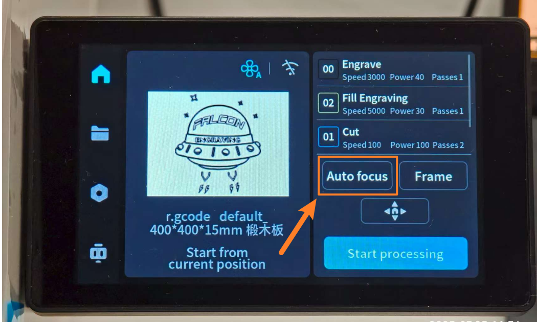 Go to the frame preview and click [Frame] to make sure the carving position is on the carving material