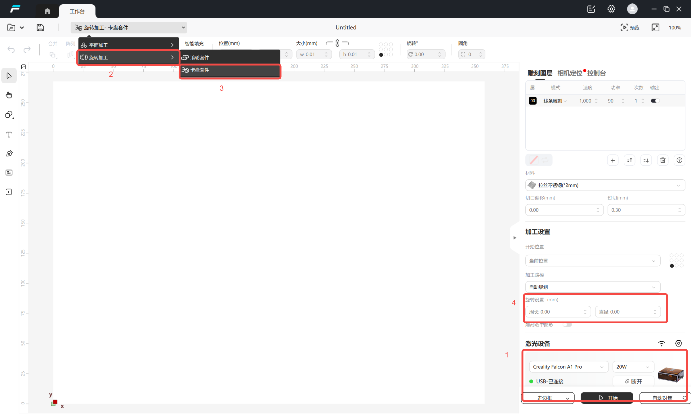 5、Select the rotation processing mode in the software and fill in the material diameter value