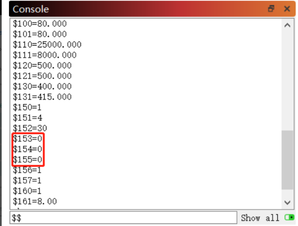 In the engraving machine software, enter $$, check if $153 = 0 $153 airflow alarm switch is turned off, range 0-1, default 0 means function is disabled. If set to 1, the function is enabled. (Common command)