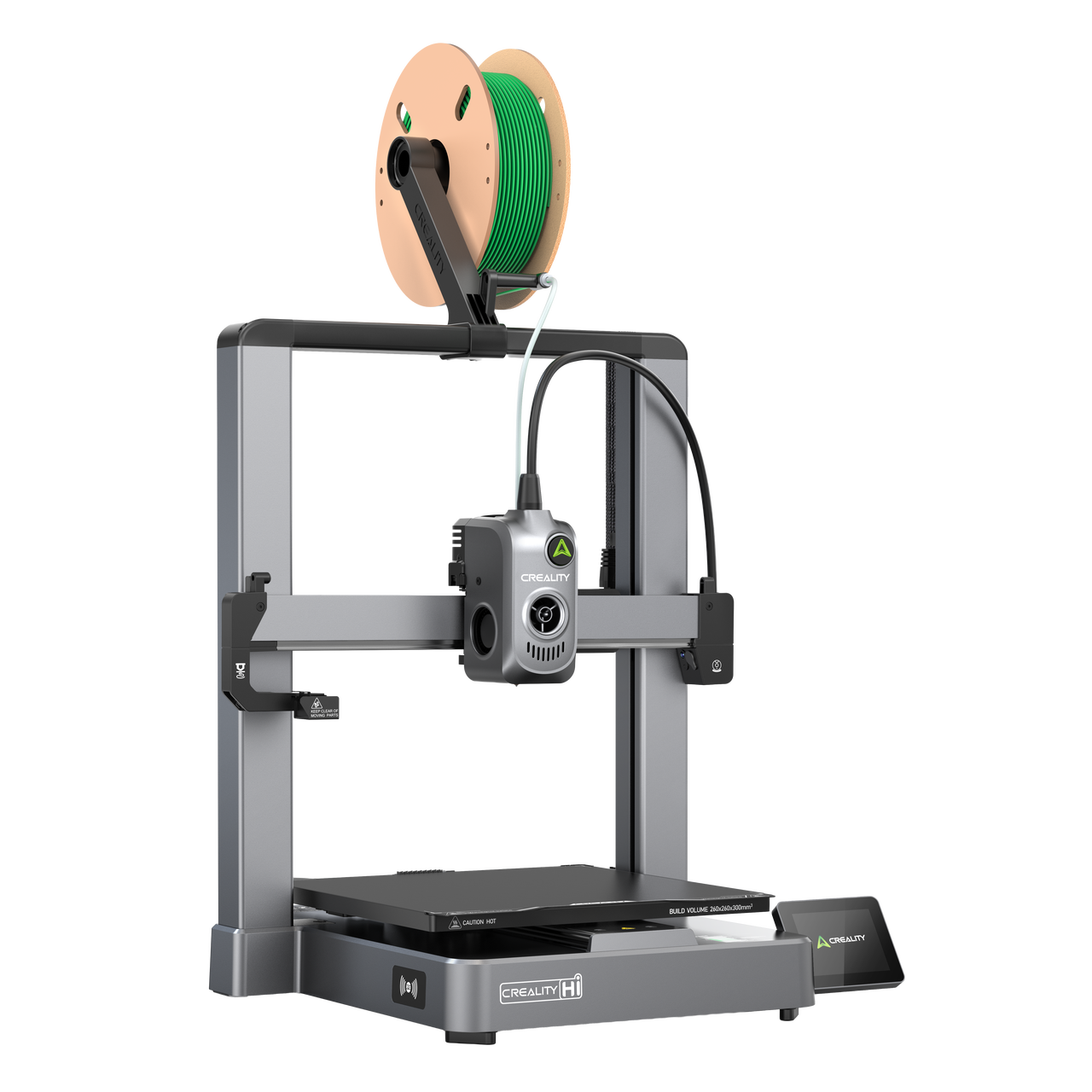 Due to its structural design, the Creality Hi printer moves the heated bed back and forth to control the Y-axis. During printing, the bed shifts horizontally, which means the model also moves within the frame.
