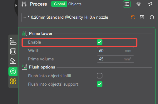In Smooth Mode, a prime tower is automatically generated by default. After each snapshot pause, the nozzle first prints on the prime tower before resuming the model print. This ensures that any oozing or extrusion defects caused by the pause are absorbed by the prime tower rather than the model itself.