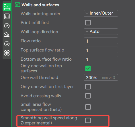 New Process Parameter: Quality → Walls & Surface → Smoothing wall speed along Z(Experimental)