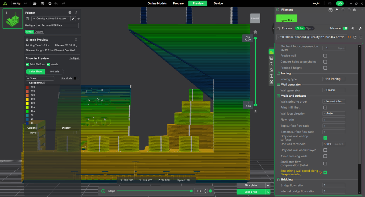 Multi-color printing: Print time estimation error is reduced to less than 5%. The new version decomposes the entire printing process, performs detailed estimation and error analysis, and delivers much more accurate print time predictions.