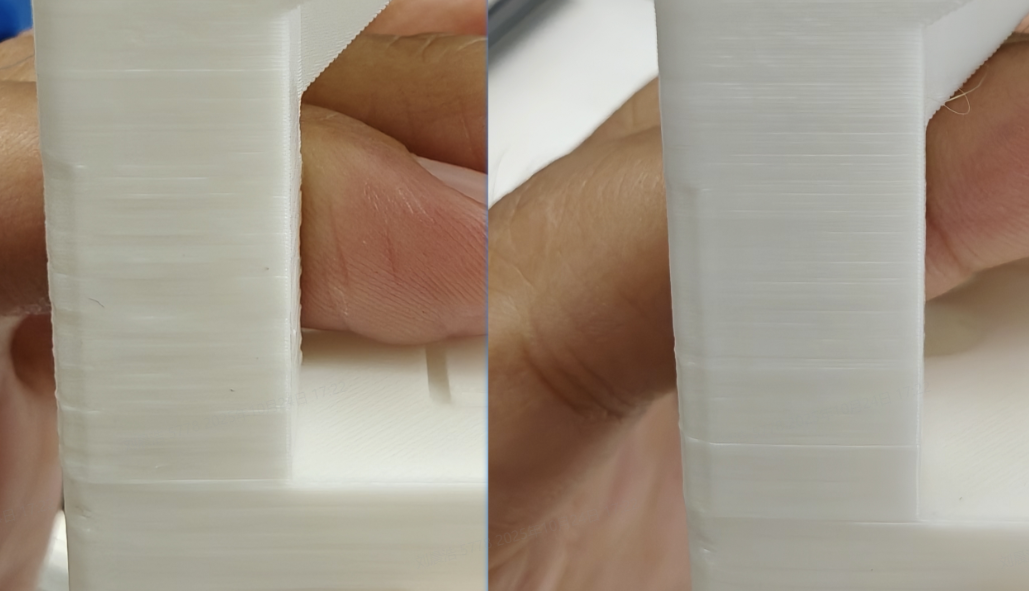 Ensures the outermost two walls are always printed at the configured maximum speed while reducing the speed of inner paths. This maintains the original layer time without sacrificing outer-wall quality. An adjustable Outer Wall Transition Distance allows the nozzle to gradually return to normal print speed, minimizing quality loss caused by sudden speed changes.