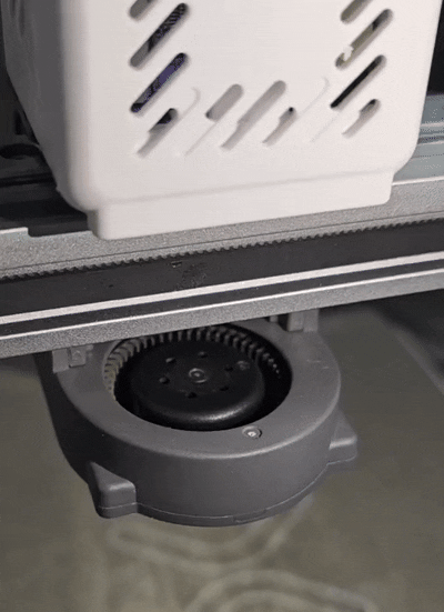 Extruder Motor Cooling Fan This fan dissipates heat from the extruder motor. It helps prevent heat buildup during long printing sessions from transferring to the filament near the extruder gears, which could cause filament jamming, thereby improving overall printing stability.