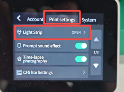 Ambient Light Settings: Settings → Print Settings → Status Light → Light Effect Style